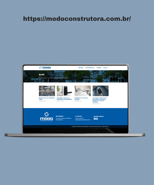 Desenvolvemos o novo site da Modo Construtora, uma plataforma digital eficiente, pensada para apresentar o portfólio de empreendimentos e os futuros lançamentos. Nosso objetivo foi criar um canal estratégico que fortalece a presença digital da marca, garantindo uma experiência de navegação otimizada para os clientes.
