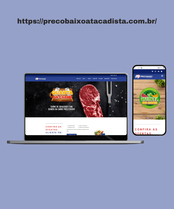 Desenvolvimento do site do Grupo Preço Baixo, empreendimento com 06 lojas distribuídas nas cidades de Belém e Ananindeua (PA). O projeto consiste em um site institucional com 07 áreas (Sobre nós, Lojas, Ofertas, Cartão PB, Farmácia, App Meu PB e Fale Conosco). No site são apresentadas a história do grupo, serviços e formas de contato.